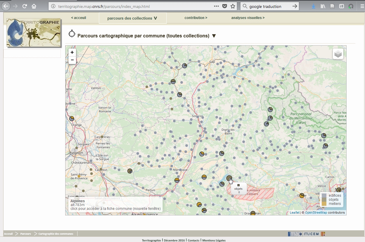 Site web du projet Territographie, projet dédié à une expérimentation d’identification, de localisation et de caractérisation participative de petits patrimoines dans la région PACA.