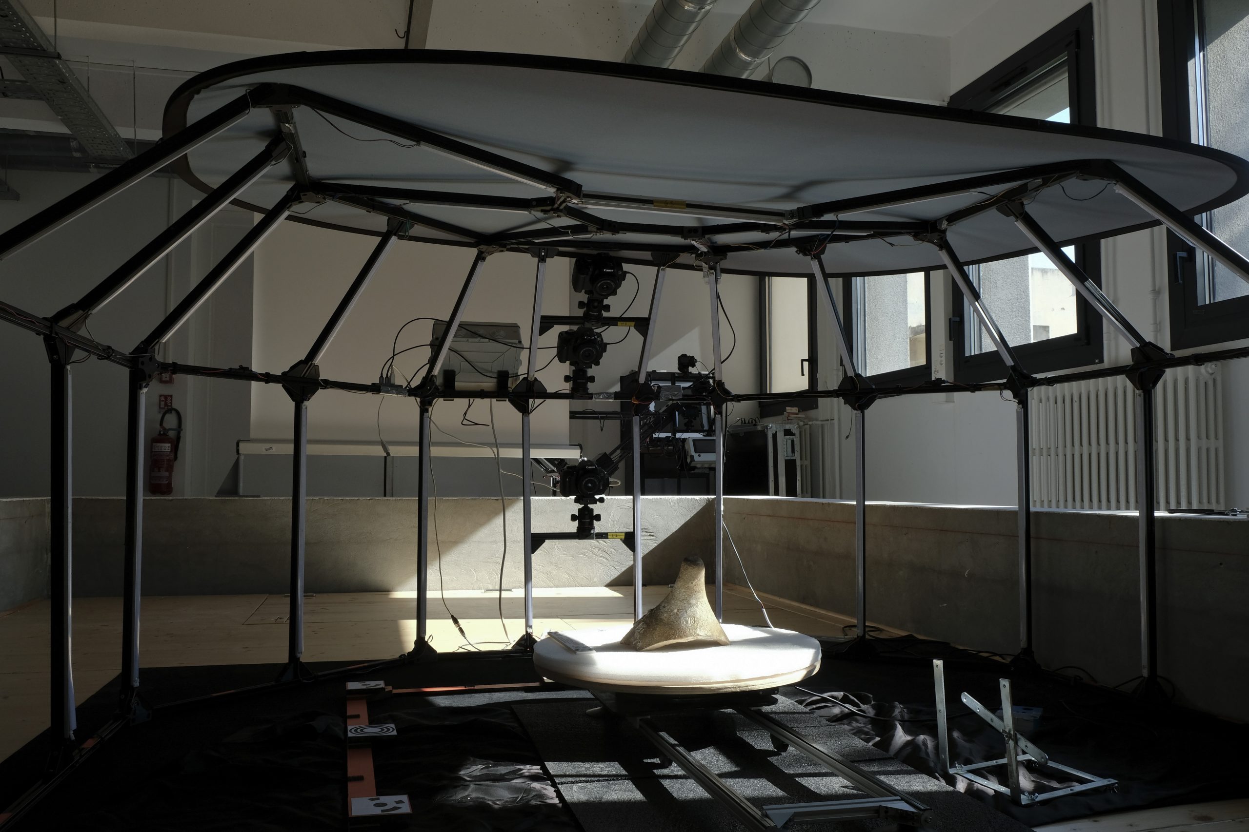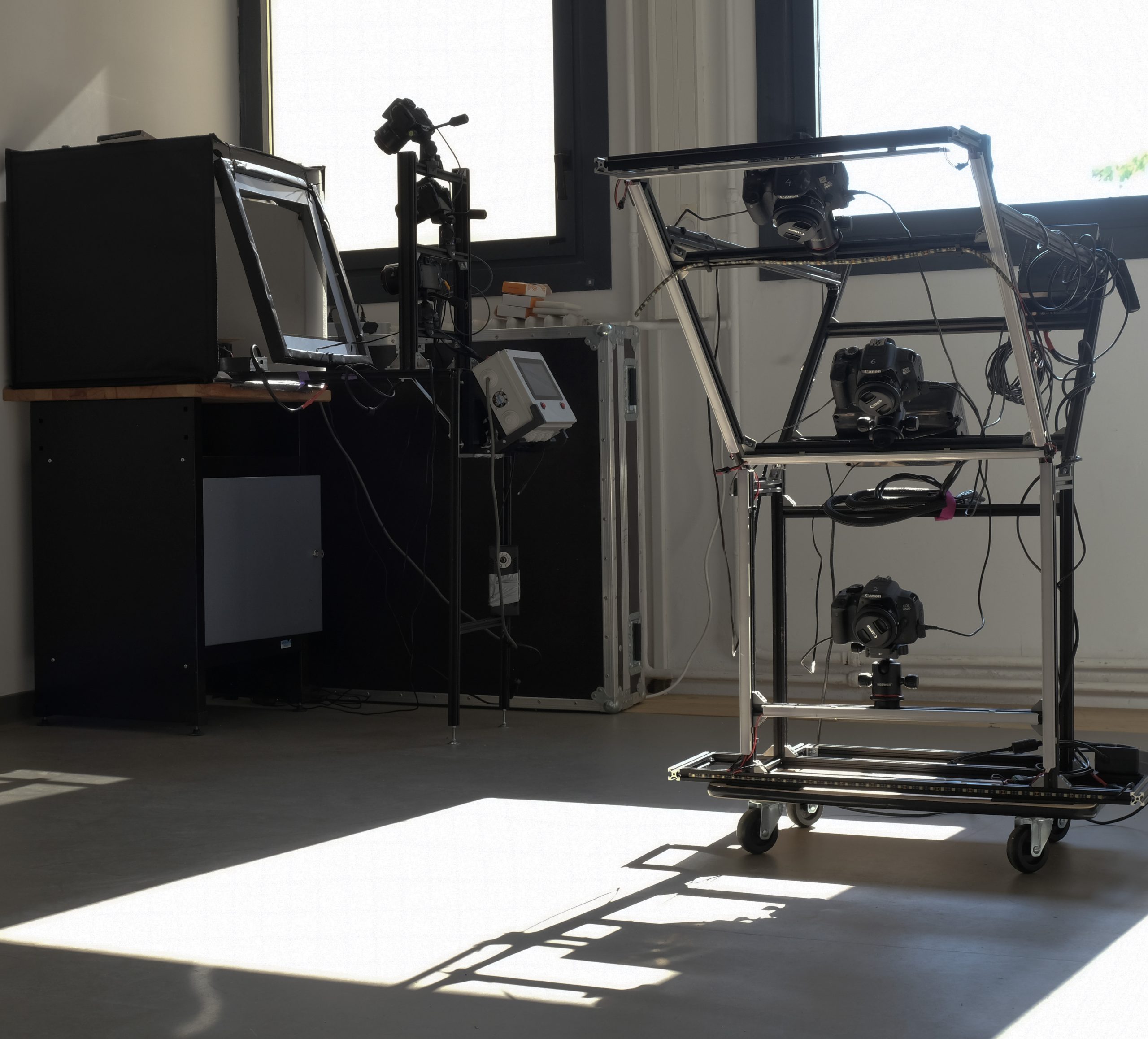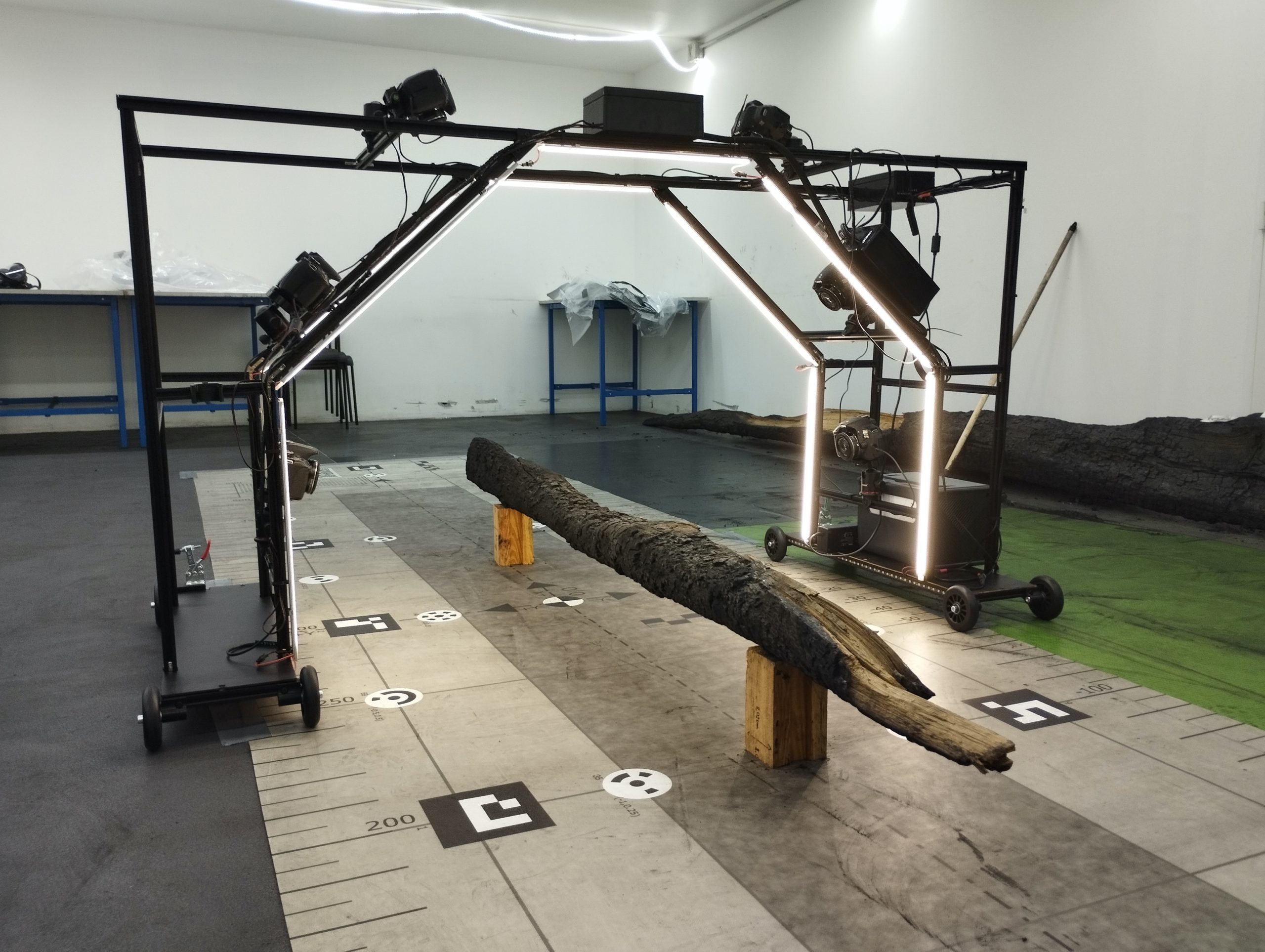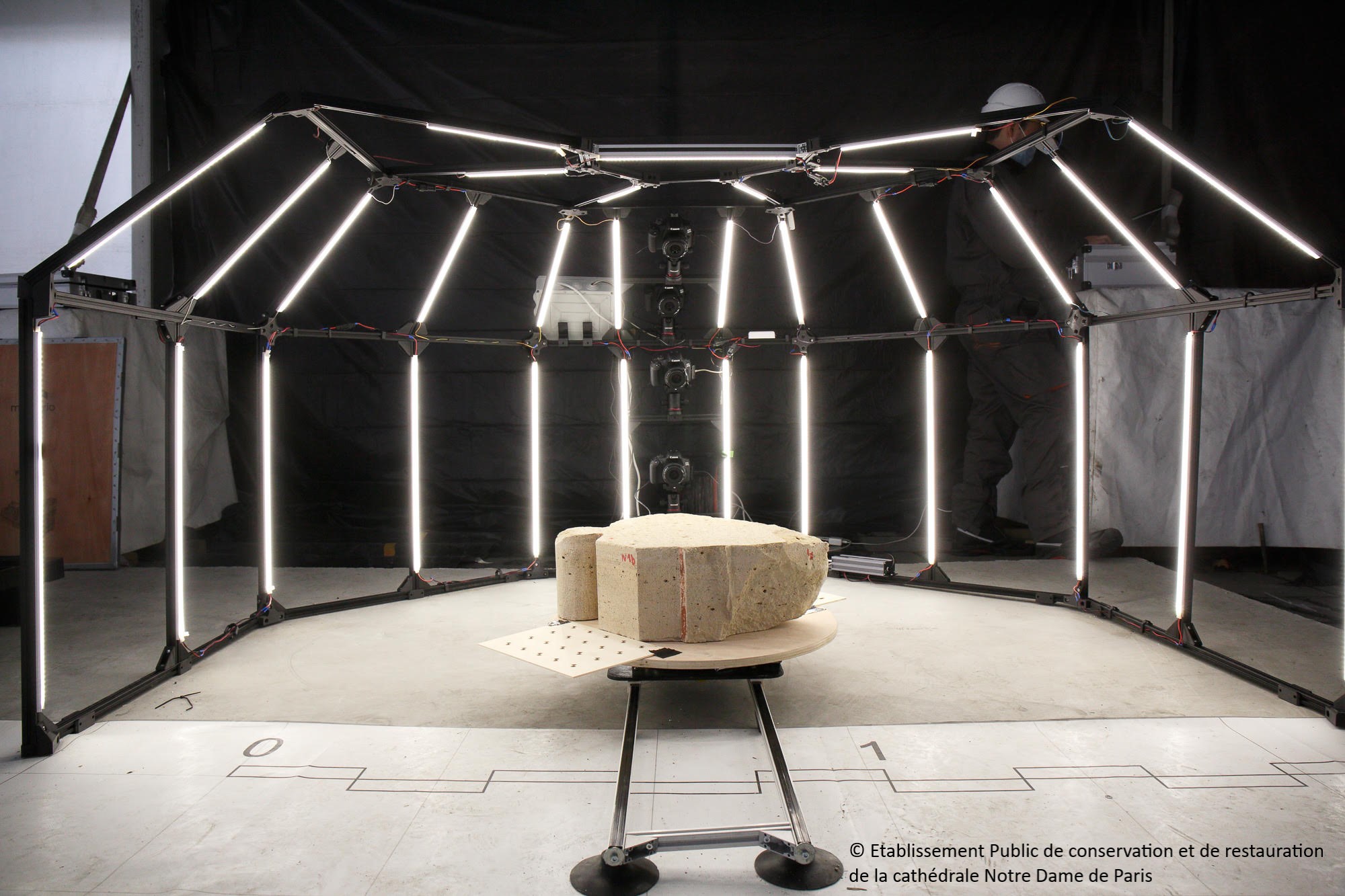 Après avoir servi à la numérisation 3D de plus de 1500 fragments issus des vestiges de la cathédrale Notre-Dame de Paris (1084 fragments du Jubé, 40 fragments de l’oculus, 22 agrafes métalliques, 160 fragments de bois, 300 tranches dendrochronologiques, 80 claveaux de l’arc-doubleau) pendant plusieurs mois (2023-2025), les dispositifs de numérisation massive 3D ont rejoint le plateau technique du laboratoire.