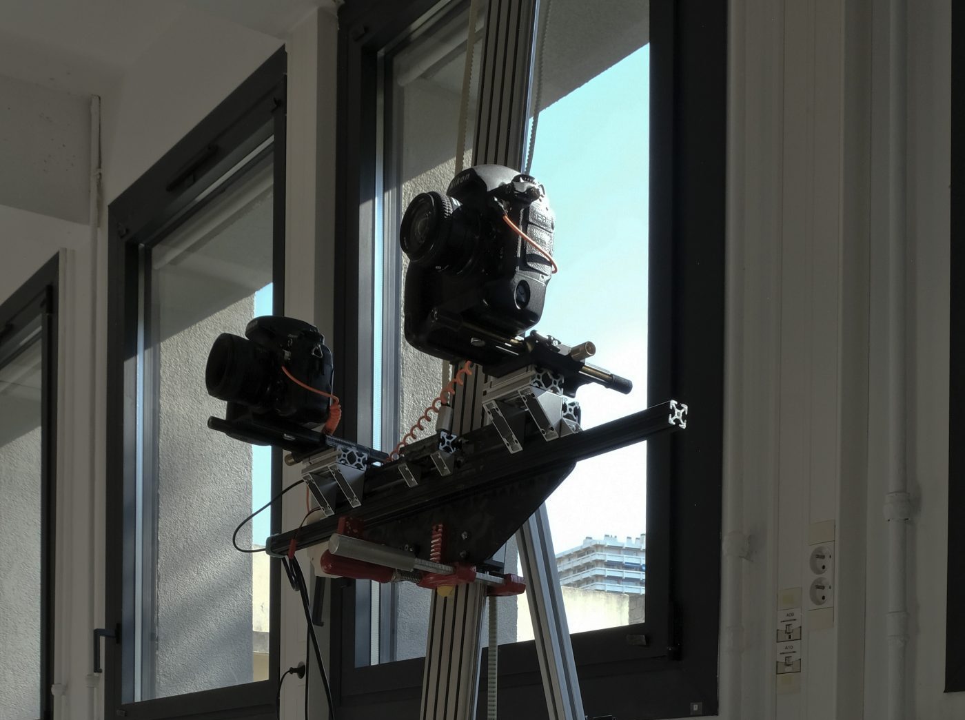 Description : une structure d’acquisition modulable et motorisée, 2 appareils photos qui se déplacent automatiquement sur deux axes